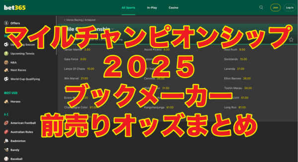 【固定オッズあり】マイルチャンピオンシップ2025(日本競馬)ブックメーカーオッズ(前売り)*2025年11月23日(日)全着順 1着:ジャンタルマンタル(2.2~3倍)