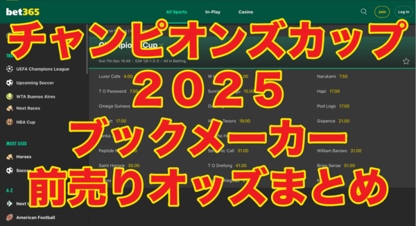 競馬のG1レースのオッズを紹介しています。 このページでは、 チャンピオンズカップを紹介します! 2025年12月7日(日)開催予定のチャンピオンズカップ 2025【中京競馬場】の情報を掲載中 通常、賭けた時のオッズで固定となるブックメーカーの競馬の場合... -