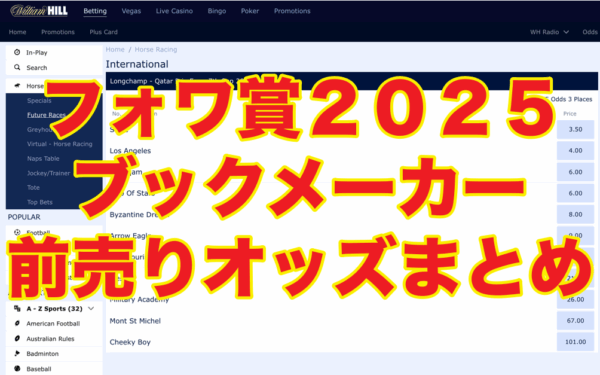 【固定オッズあり】フォワ賞2025(海外競馬/フランス) ブックメーカー全オッズ!(前売り)*9月7日(日)1着:ビザンチンドリーム(7.5倍)