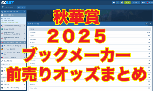 【固定オッズあり】秋華賞2025(日本競馬)ブックメーカーオッズ(前売り)*2025年10月19日(日)開催 全着順 1着:エンブロイダリー(5~8倍)