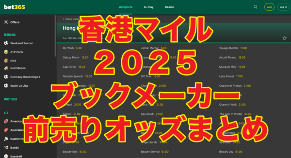 【固定オッズあり】香港マイル2025(海外競馬/香港)ブックメーカー全オッズ!(前売り) *2025年12月14日(日)開催 全着順 1着:ヴォイッジバブル(3.75~11倍)