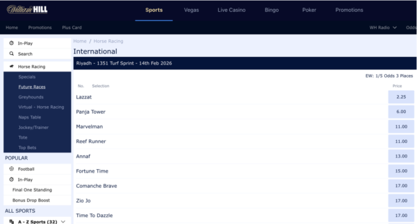 1351ターフスプリント2026オッズ(ウィリアムヒル/William Hill)について