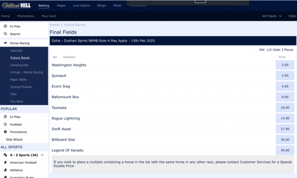 ドゥハーンスプリント2025オッズ(ウィリアムヒル/William Hill)について