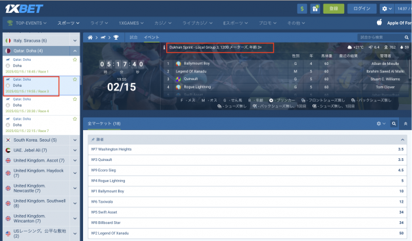 ドゥハーンスプリント2025オッズ(ワンバイベット/1xbet)について