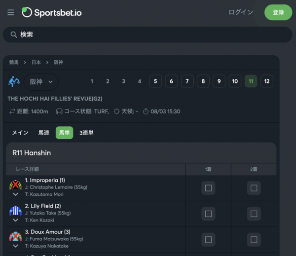 *スポーツベットアイオーは、Antepost(前売り)でのオッズ提供はありません。