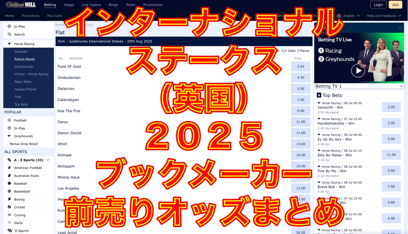 インターナショナルステークス2025オッズ(ウィリアムヒル/William Hill)