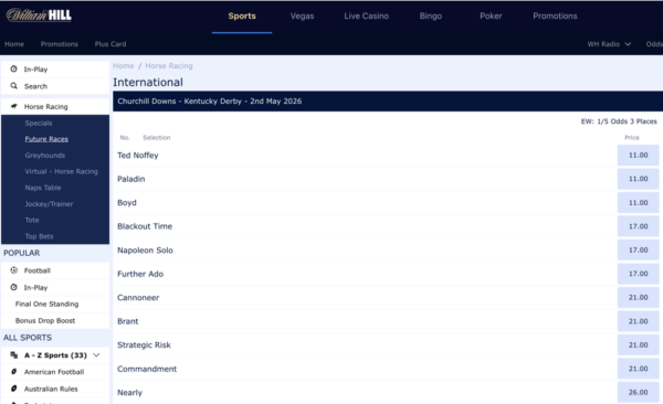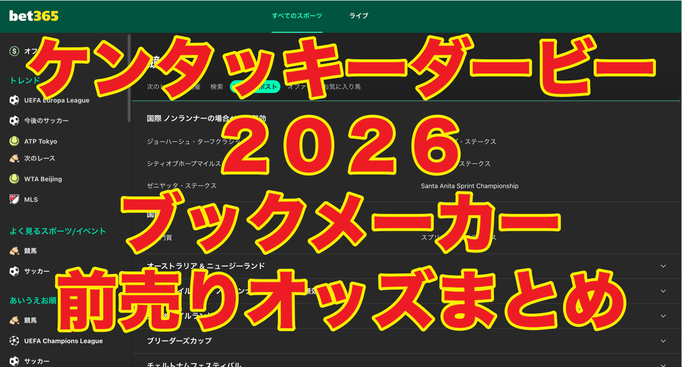 【固定オッズあり】ケンタッキーダービー2026(海外競馬/アメリカ) ブックメーカー全オッズ!(前売り)*2026年5月2日(土)開催(ポイントレース情報)*3/6オッズ更新