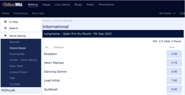 ムーランドロンシャン賞2025オッズ(ウィリアムヒル/William Hill)について