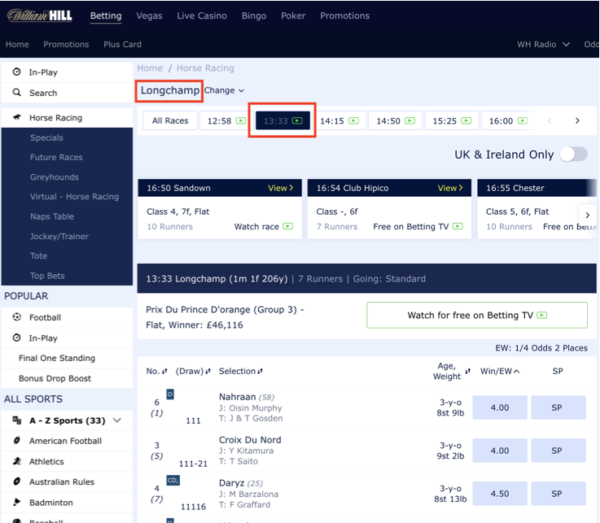 Europe >> Longchamp >> 13:33(表記が英国時間)