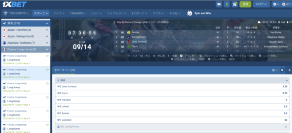 プランスドランジュ賞2025オッズ(ワンバイベット/1xbet)について