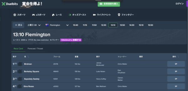 クイーンエリザベスステークス・フレミントン2025オッズ(デュエルビッツ)