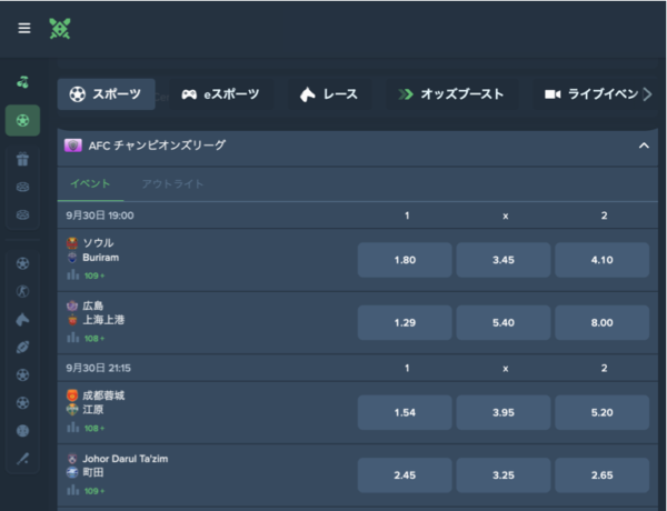 *オッズ参照できなかった場合は、1xbetなどのオッズを参照することもあります。